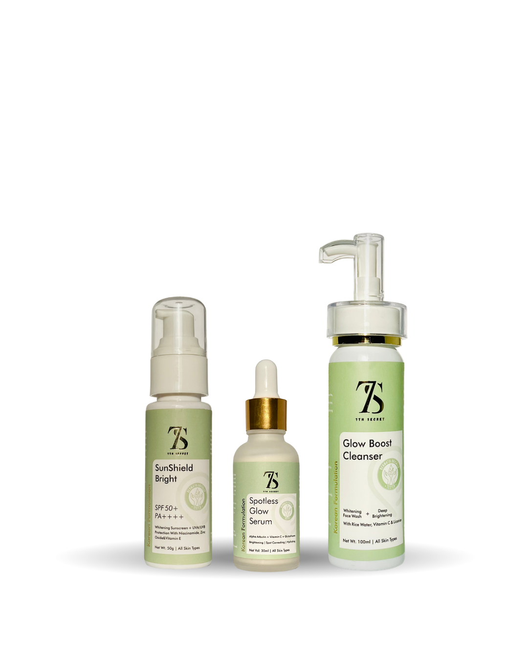 �� Glow Boost Cleanser + ☀️ SunShield Bright SPF 50+ + �� Spotless Glow Serum